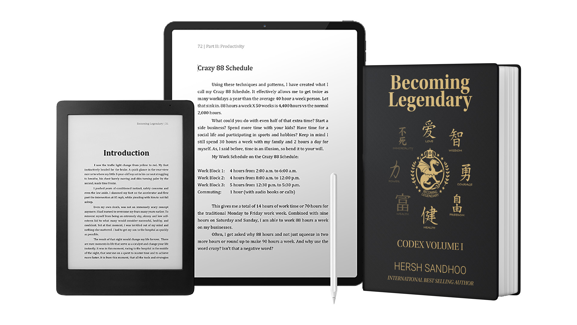 The Becoming Legendary Codex contains eight distinct books split into two volumes. The first volume is centered around developing yourself, purpose, skills, confidence, energy and mindsets needed to awaken and be your best self. They serve as the foundation of success and happiness. The final volumes layout the tactical tools and strategies to excel create a life of your dreams and pass on a lasting legacy.
